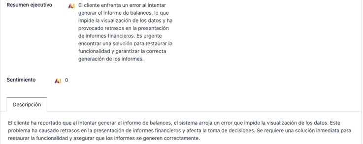 Aunque la inteligencia artificial en Odoo es una funcionalidad reciente, su evolución ha sido constante y ya cuenta con cada vez más casos de uso que demuestran su aplicabilidad; es útil ver ejemplos prácticos de cómo se aplican en los diferentes módulos clave del sistema. A continuación, te mostramos casos prácticos ya implementados, de cómo la IA está transformando el uso cotidiano de este ERP: